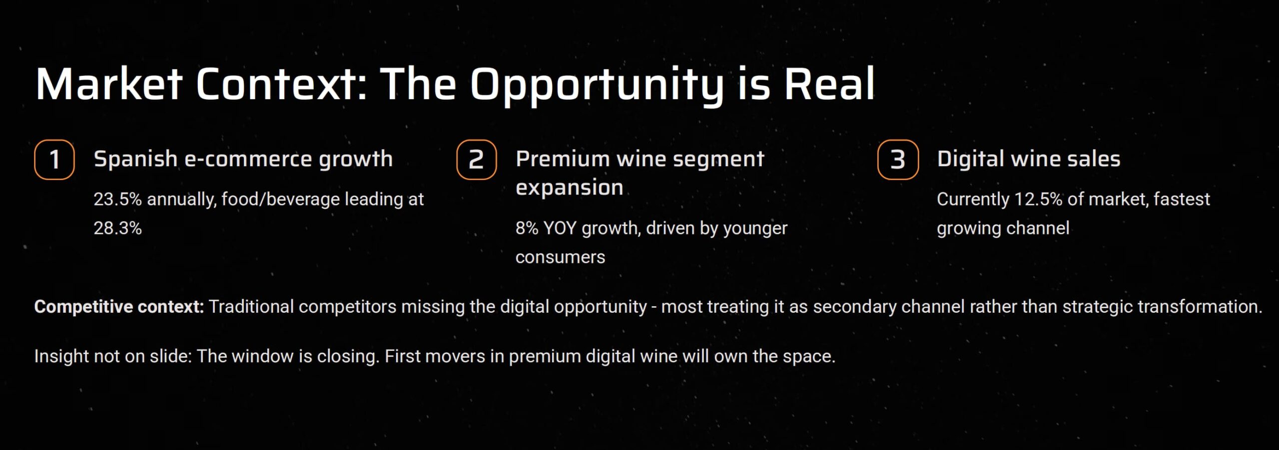 Here’s what caught our attention: traditional competitors were missing the opportunity entirely. Most premium wine producers are viewed online as an afterthought rather than a strategic transformation opportunity.