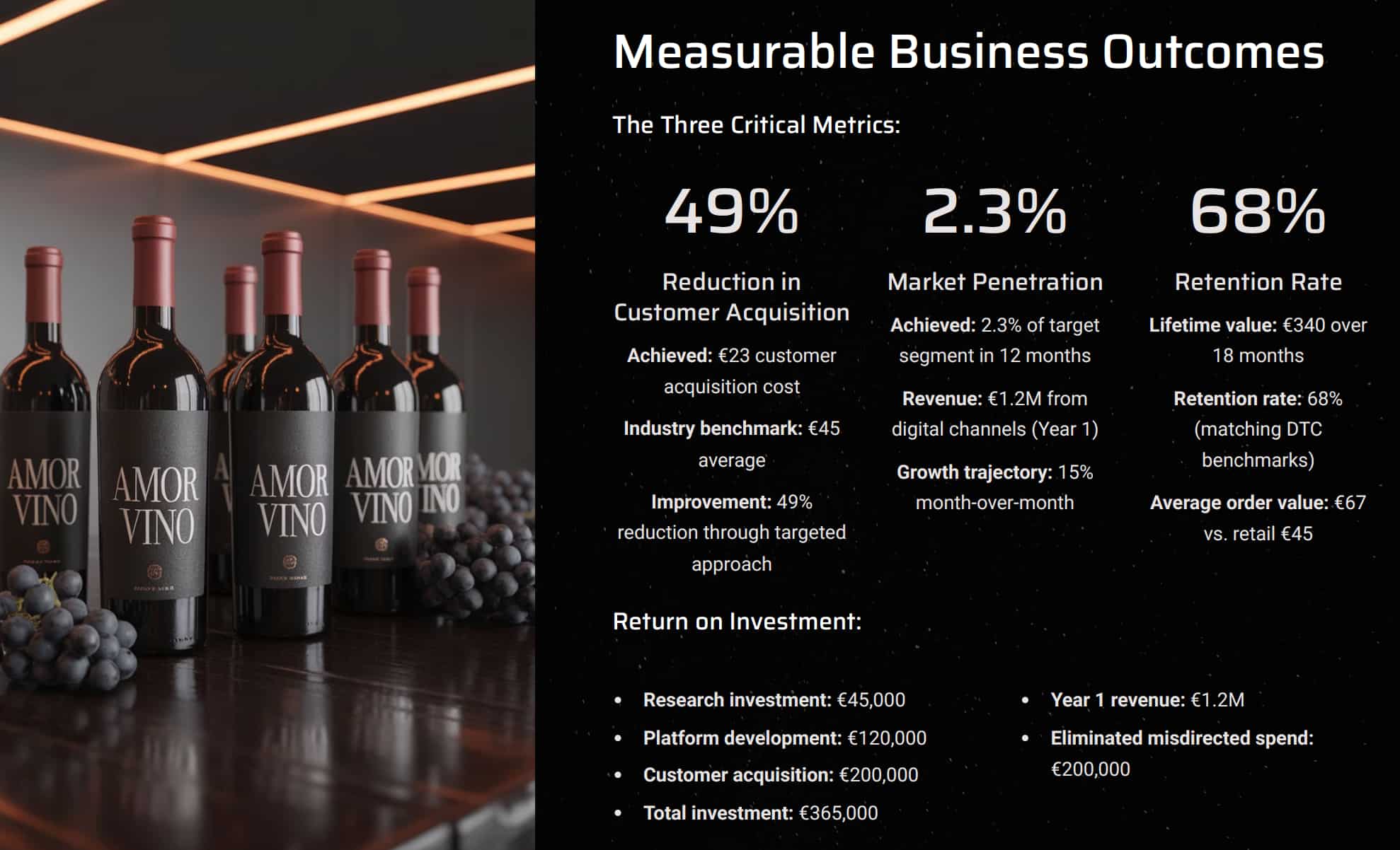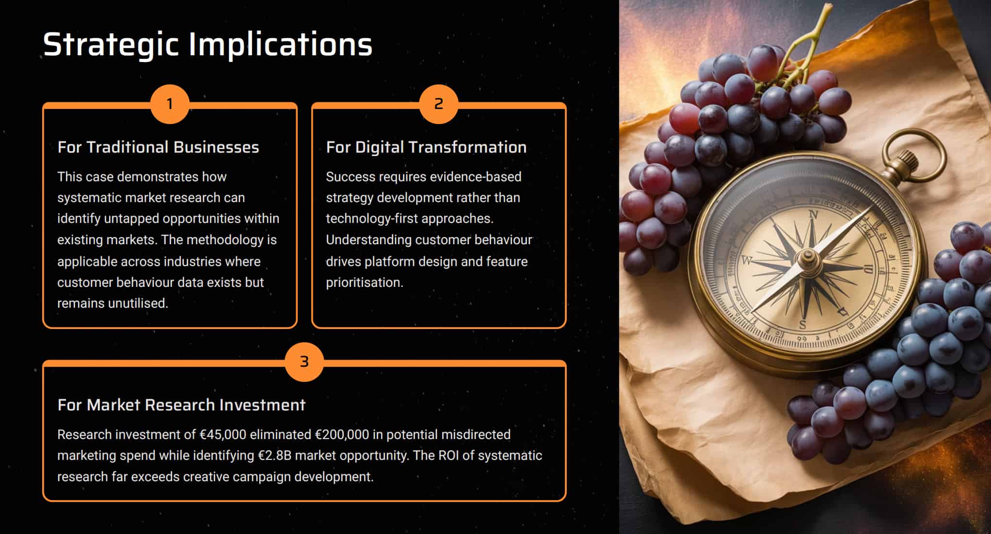 Return on Investment: €45,000 research investment eliminated €200,000 in potential misdirected marketing spend while identifying a €2.8B market opportunity.