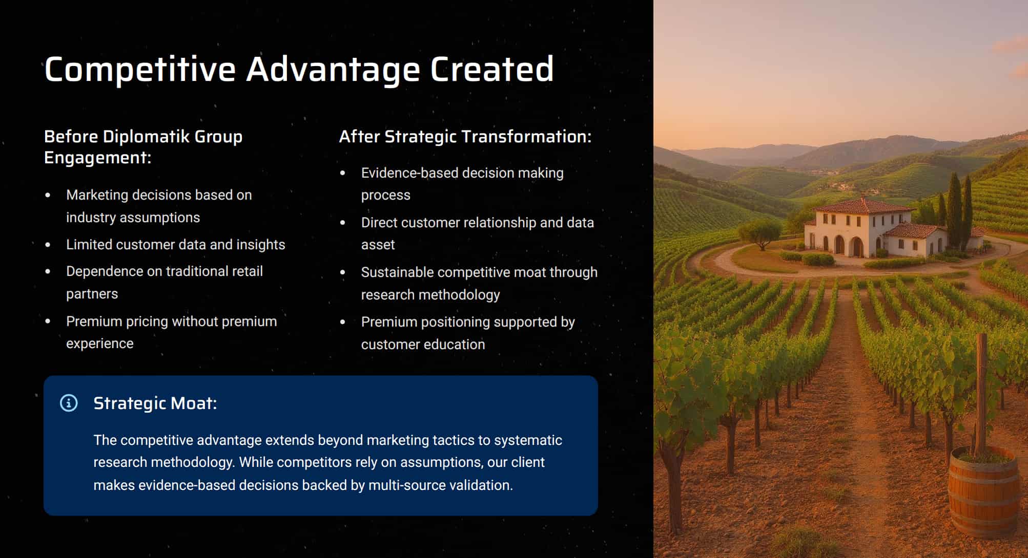 Armed with this evidence, we transformed the business model from traditional B2B distribution to direct-to-consumer market leadership, adapting the proven Dollar Shave Club methodology to wine retail.